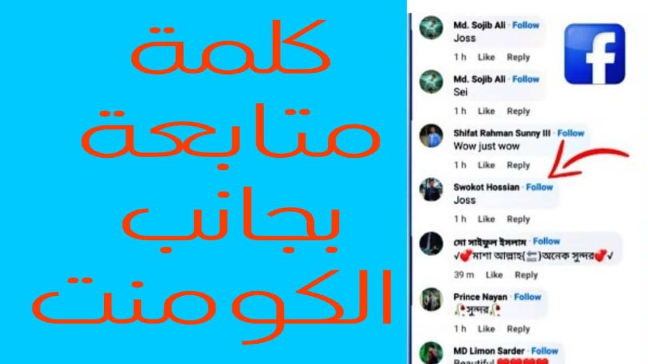 طريقة إضافة كلمة متابعة بجانب التعليق في فيسبوك